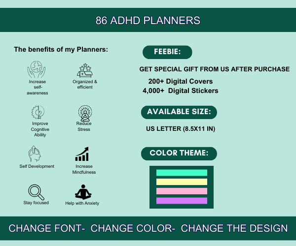 Introducing you the 86 Page 2024 ADHD Planner are the perfect purchase for children with ADHD. This planner is packed with features and resources that will keep your child organized, focused, and on track throughout the year. Your child will enhance time management, improve organization, communication and academic success.